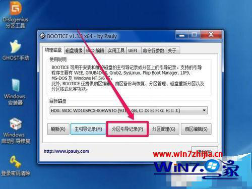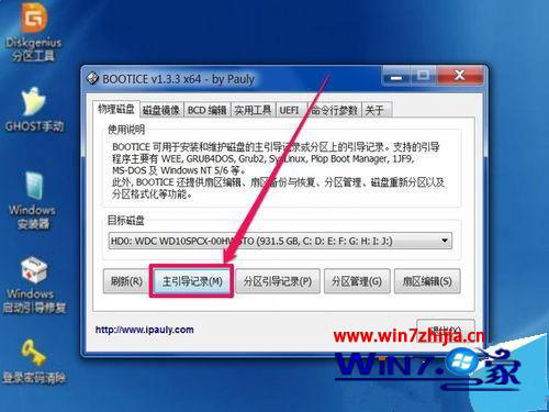 4、選擇好硬盤后,在下面,點擊“主引導(dǎo)記錄”這個按鈕;
