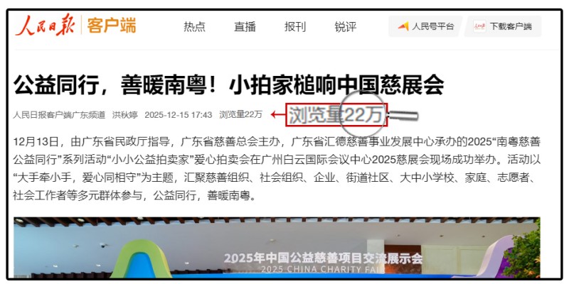 本次活動相關報道還登上人民日報平臺,單篇文章瀏覽量達22萬次(數據截至12月18日17點),社會影響力持續擴大。