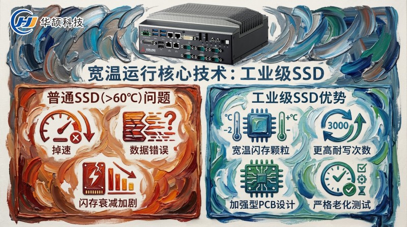 劃重點了!很多人以為高溫考驗的是CPU,萬萬沒想到其實是存儲!普通SSD過了60℃就瘋狂掉速、報錯,甚至罷工。想要扛住70℃?必須上寬溫工業級SSD!更高耐寫次數+嚴格老化測試,這是整機寬溫的靈魂!