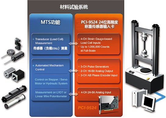 材料試驗(yàn)系統(tǒng)應(yīng)用:使用24位高精度稱重傳感器輸入卡進(jìn)行自動(dòng)材料測(cè)試。