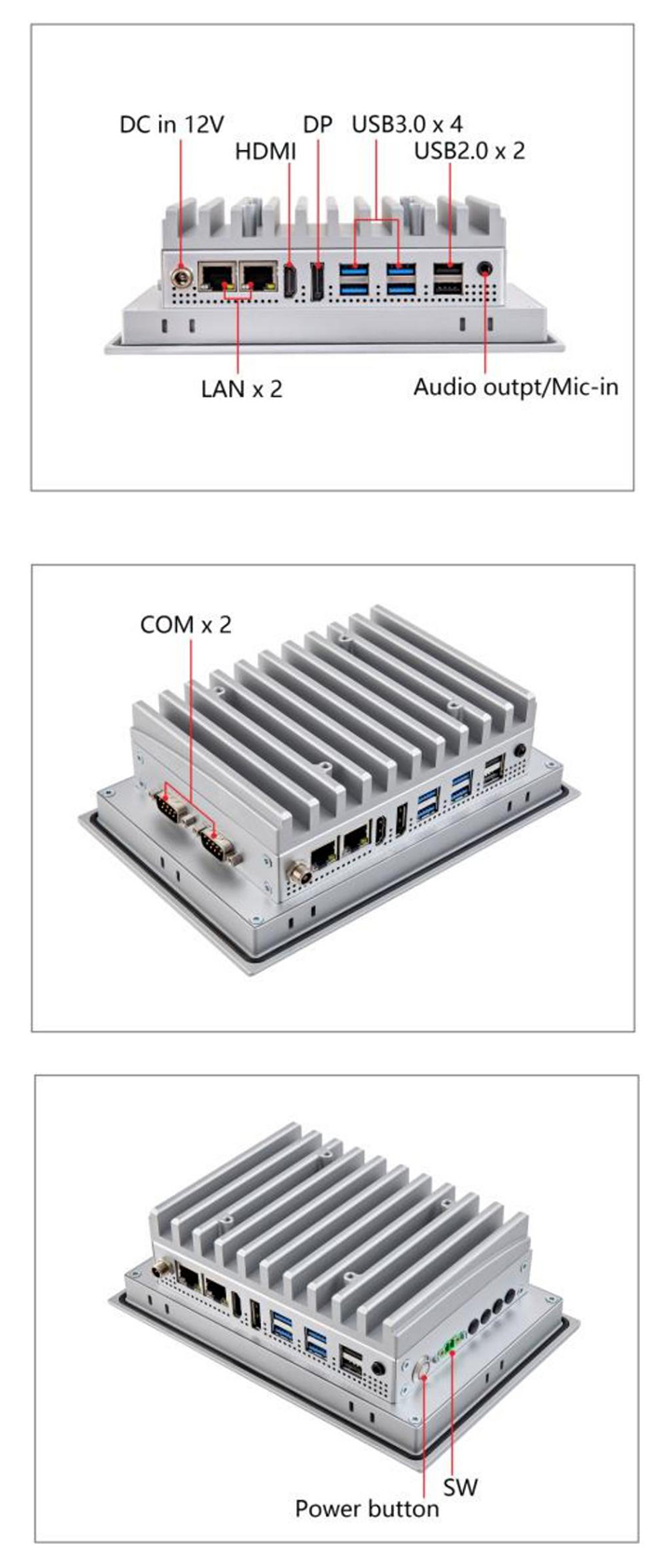 產品采用一體式設計,將主機、顯示屏與觸摸屏高度集成,結構緊湊穩定。其前面板達到IP65防護等級,能夠有效防止粉塵侵入和液體潑濺。結合低功耗無風扇設計與9~36V寬壓直流輸入,確保了設備在多粉塵、電壓波動較大的工業現場能夠長期穩定、靜音地運行,尤其適合需要連續作業的自動化產線、倉儲物流等場景。