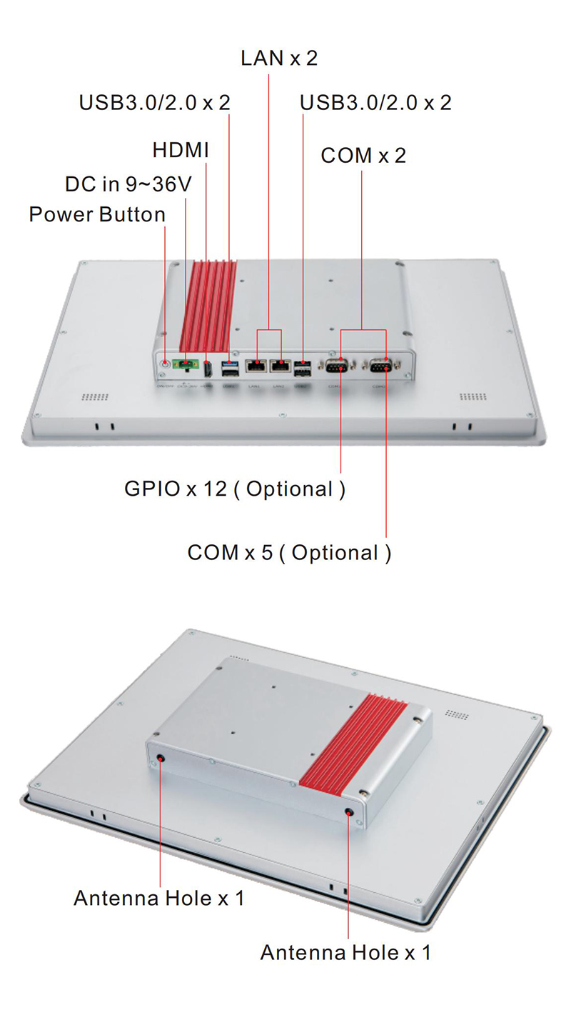 ?尺寸多樣,包括10.1寸~21.5寸等多種規格可選 ?可選Intel? J1900 或第4/7/8/11 代Core i3/i5/i7 CPU ?一個 SODIMM內存插槽,最大支持16GB內存 ?LCD+HDMI 雙顯,同步/異步模式 ?全平面觸摸屏,前面板IP65防護等級 ?低功耗無風扇 ?9 ~ 36V 寬壓輸入