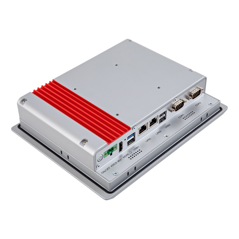 產品前面板達到IP65防護等級,能夠有效防止粉塵侵入和液體潑濺,滿足工業環境下對堅固耐用的要求。整機采用低功耗無風扇設計,結合9~36V寬壓直流輸入,使其能夠適應工業現場中常見的電壓波動,并在多粉塵或需要持續運行的場景下實現安靜、穩定的工作。